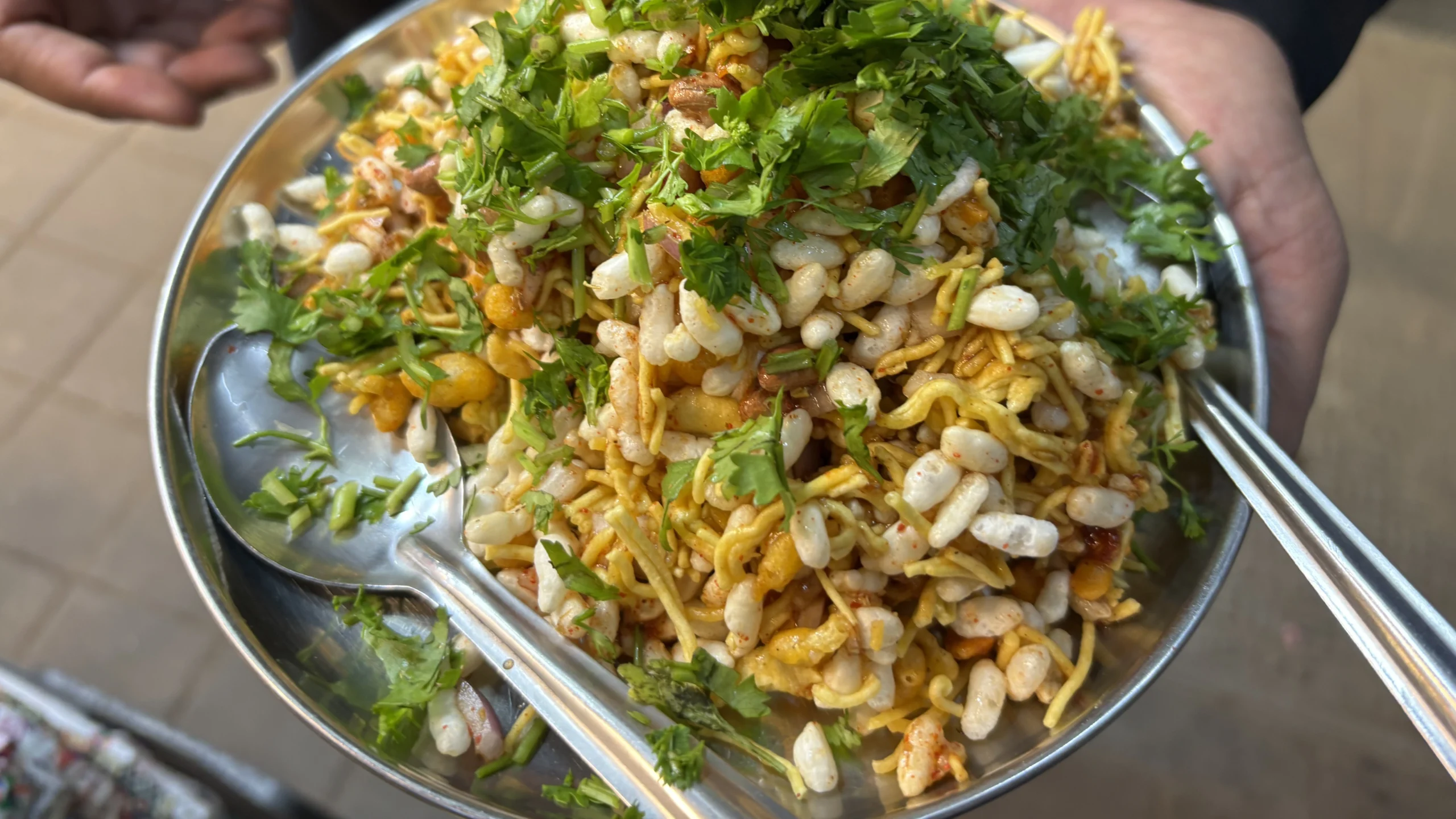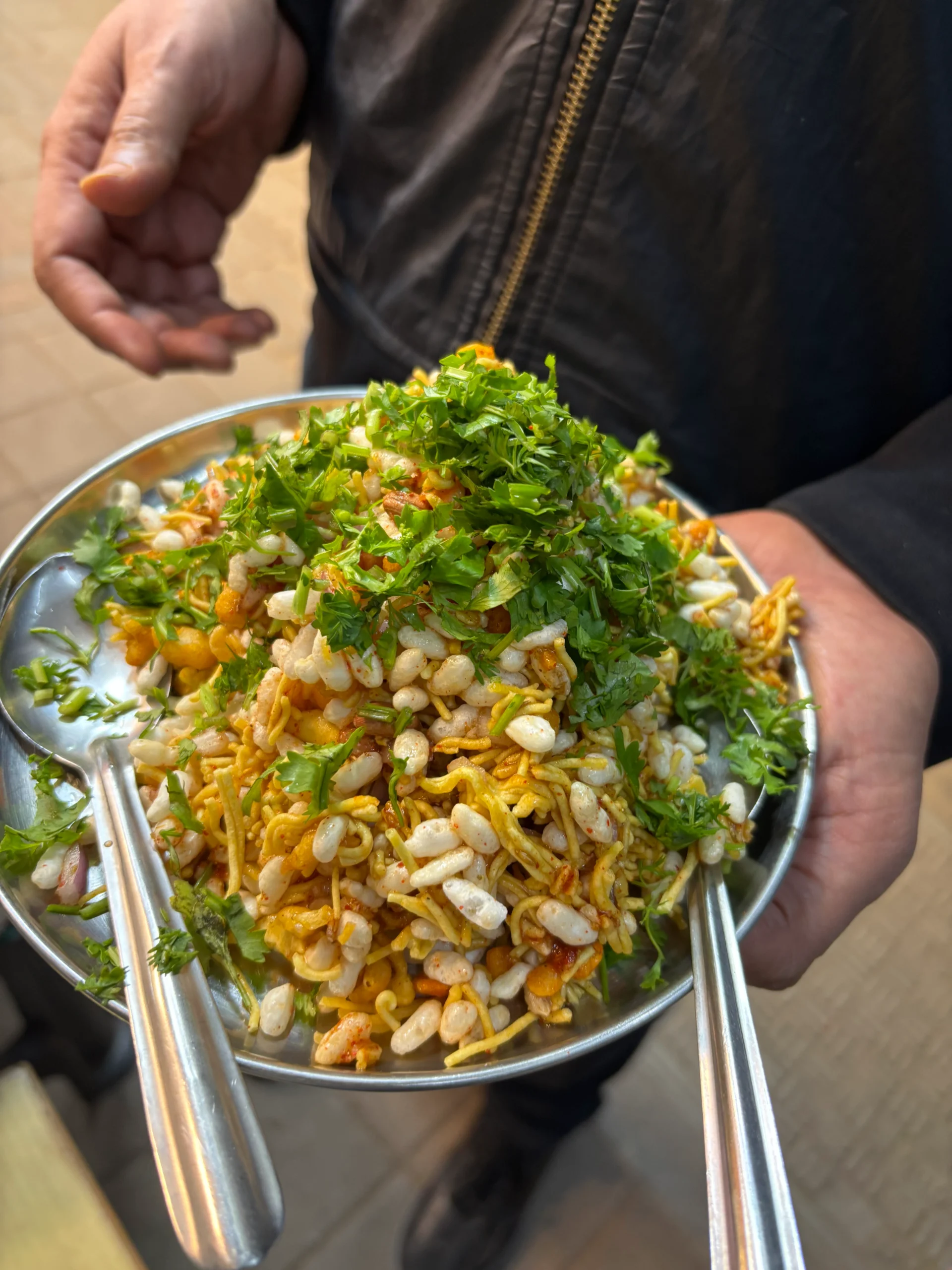 Bhel served here is simple yet very flavourful. The unique thing about the bhel is that all the ingredients are light, fresh and very crunchy. The blend of spices is perfect – neither too sweet nor too tangy and mildly spicy. It is neither too dry nor too wet & soggy. Every bite of the bhel, till the last, retains its crunchiness.